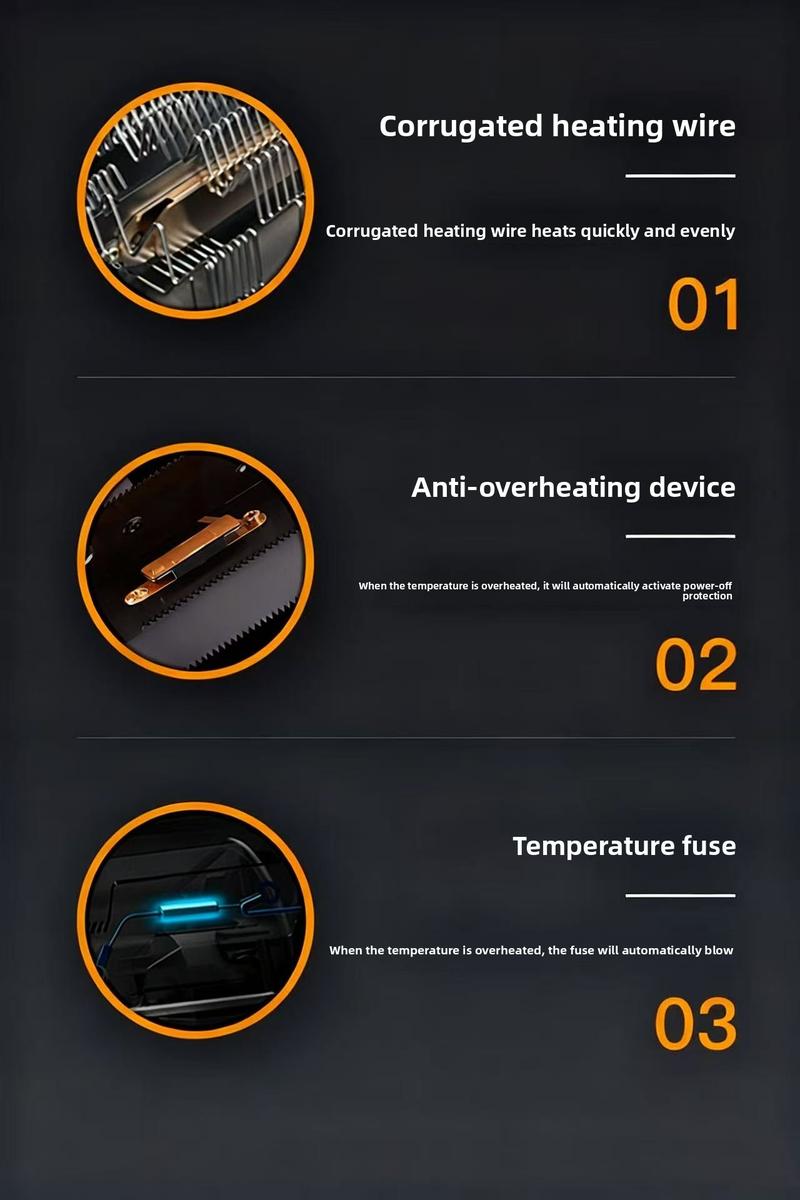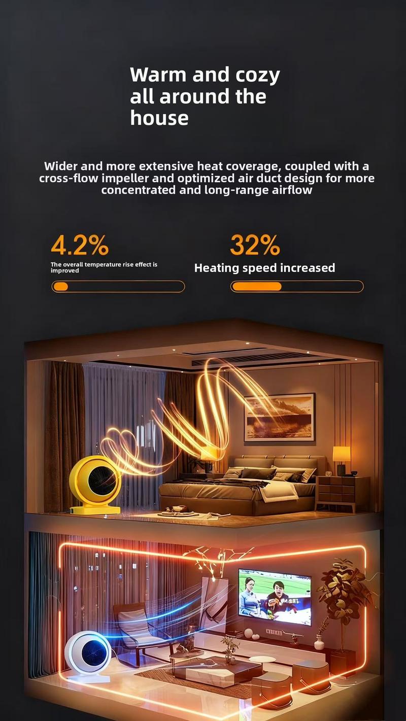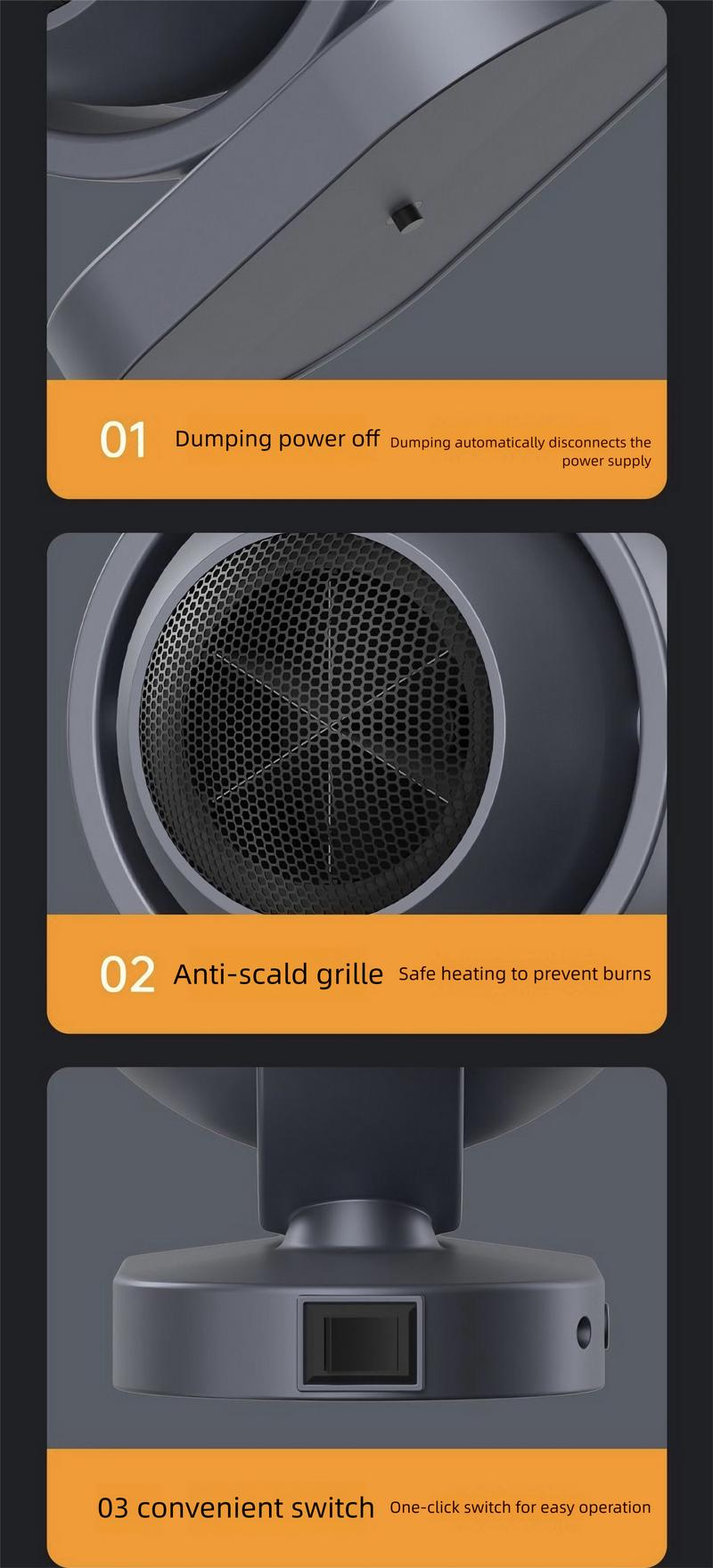 This small heater provides 2S efficient heating, ideal for compact spaces. 🏠 Perfect for indoor use, it ensures safety and convenience. Suitable for bathrooms, home offices, or bedrooms.